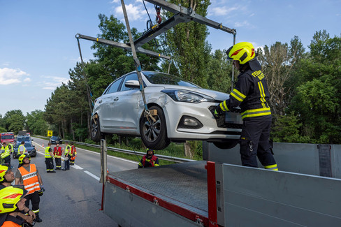 am dritten Tag in Folge kam es für die Feuerwehr Mautern zu einem Einsatz. Nach der Tierrettung am Samstag, der Personenrettung am Sonntag folgte Montag abends dann eine KFZ-Bergung auf der B33 im Bereich der Abfahrt der Donaubrücke.