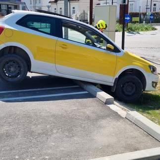 Sie kam mit ihrem PKW über den Randstein und konnte nicht mehr selbständig zurück.