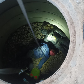 Als Szenario 2 gab es zwei Personen aus einem Sickerschacht zu retten. Nach einer Lageerkundung durch den Gruppenkommandant und einer Messung des ca. 3 Meter tiefen Schachts wurde festgestellt, dass sich im Schacht eine gefährliche Reduzierung des Sauerstoffgehalts von unter 18 % Sauerstoffgehalt (normal sind 21%) befand. Somit musste die Rettung der beiden Personen unter umluftunabhängigen Atemschutz durchgeführt werden. Während die Mitglieder mittels Steckleitern, Umlenkrollen, Rettungsseilen und Arbeitsleinen eine Abseil- und Rettungsvorrichtung aufgebauten, rüsteten sich 2 Mitglieder mit den Atemschutzgeräten aus, welche sofort zu dem Verunglückten in den Schacht hinabgelassen wurden, um diese so rasch wie möglich aus den Gefahrenbereich zu bringen. Die weitere Versorgung der verunglückten Personen wurde dann außerhalb des Schachts vorgenommen, wo sich wieder ein normaler Sauerstoffgehalt der Luft befand.